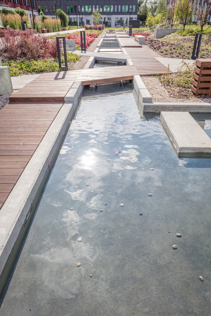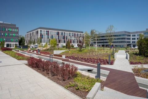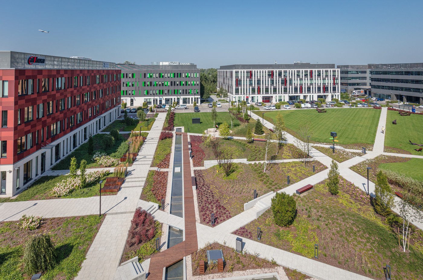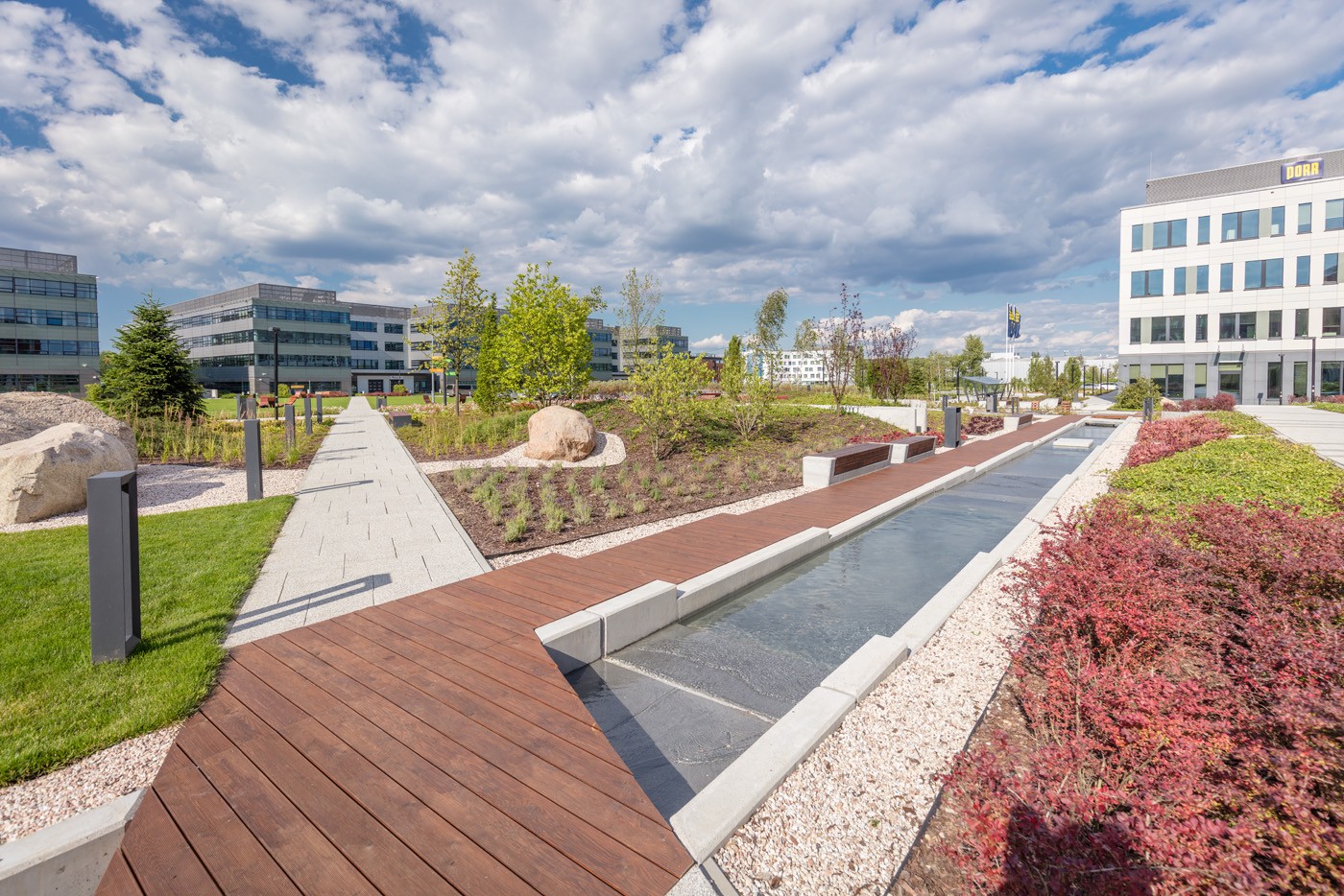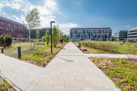 Poleczki Park to również przestrzenie zielone, podzielone na kilka stref przeznaczonych do relaksu, zabawy lub też do pracy. Designerskie ławki i wygodne, drewniane leżaki zapraszają do odpoczynku. Teren wokół fontanny, staw i jego okolice, taras przy kawiarni to nie tylko atrakcyjne miejsca na lunch i spotkania. Capital Square jest też miejscem ciekawych wydarzeń organizowanych cyklicznie dla pracowników kompleksu.